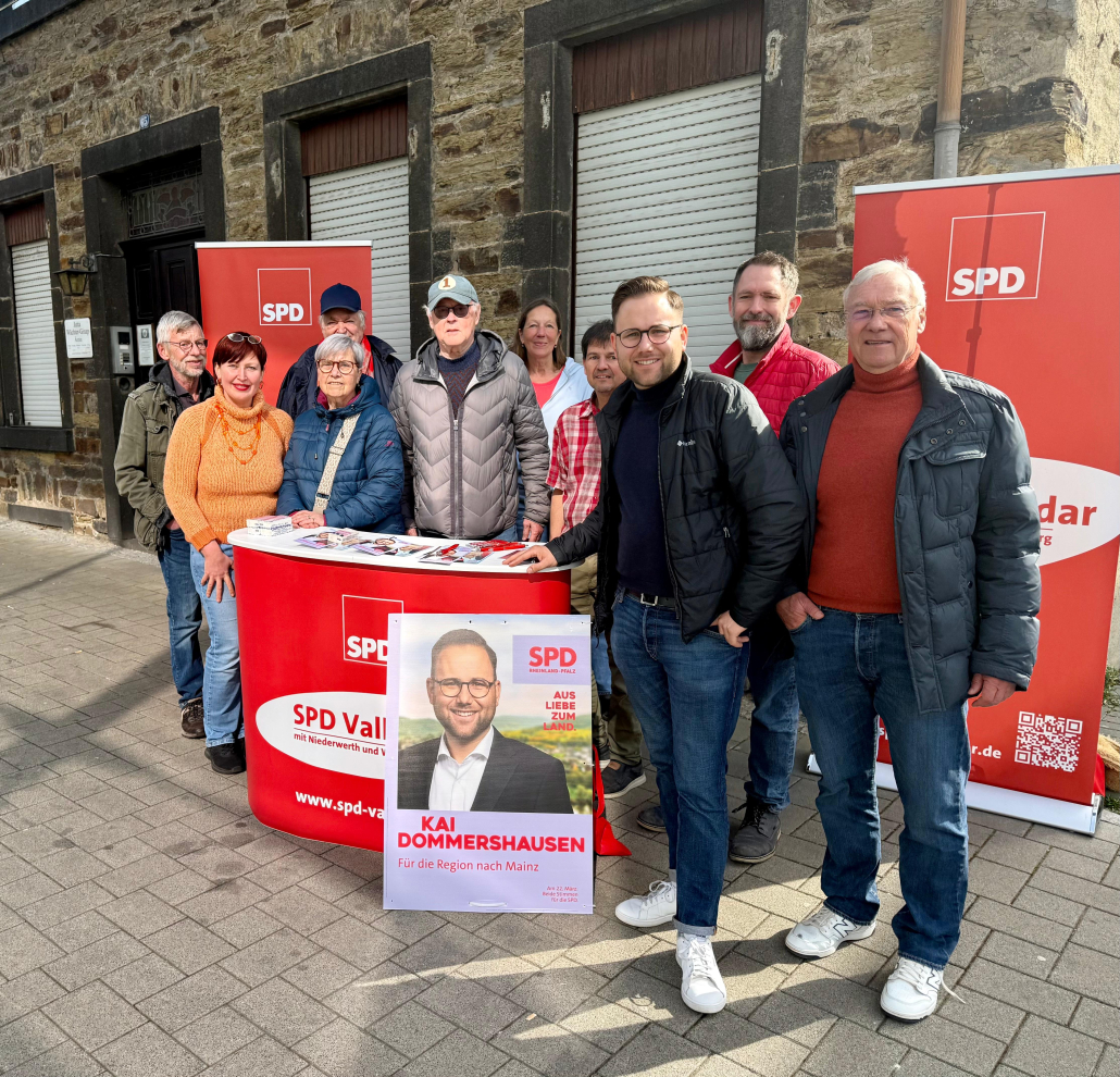 Vallendar. Am Samstag, dem 7. März, war die SPD Vallendar mit einem Infostand zur bevorstehenden Landtagswahl in Rheinland-Pfalz in der Stadt präsent. Bei kühlen Temperaturen nutzten zahlreiche Bürgerinnen und Bürger die Gelegenheit, mit den Mitgliedern des Ortsvereins ins Gespräch zu kommen und ihre Anliegen zu schildern.
